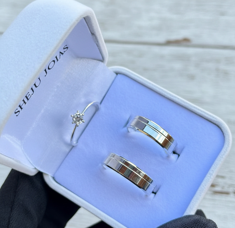Alianças de Prata 950 – E anel Solitário de Prata 950