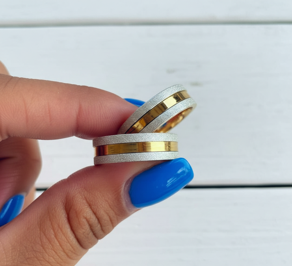 1 nome + data + símbolo simples (coração, símbolo do infinito, símbolo da cruz e afins) por aliança.
