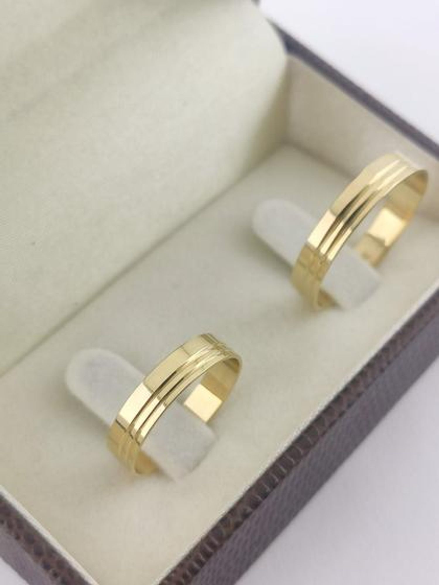 Alianças de Casamento Ouro 18k Legítimo 4mm 4g + Solitário