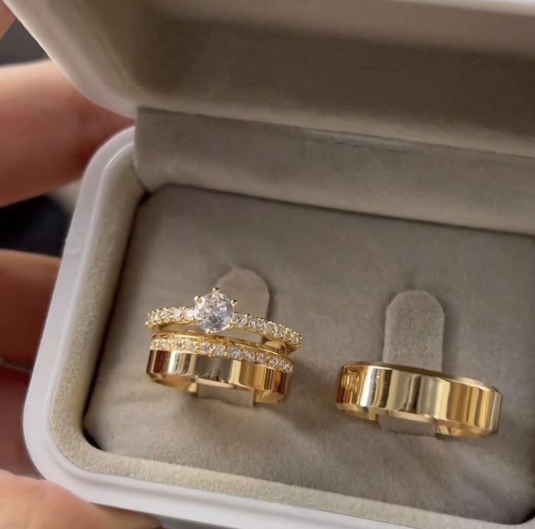 A presença do anel solitário, com sua zircônia preciosa estrategicamente em destaque, celebra a singularidade de cada indivíduo no contexto da união, lembrando que, apesar de estarem unidos, cada parceiro continua a brilhar com suas próprias virtudes e personalidades únicas.